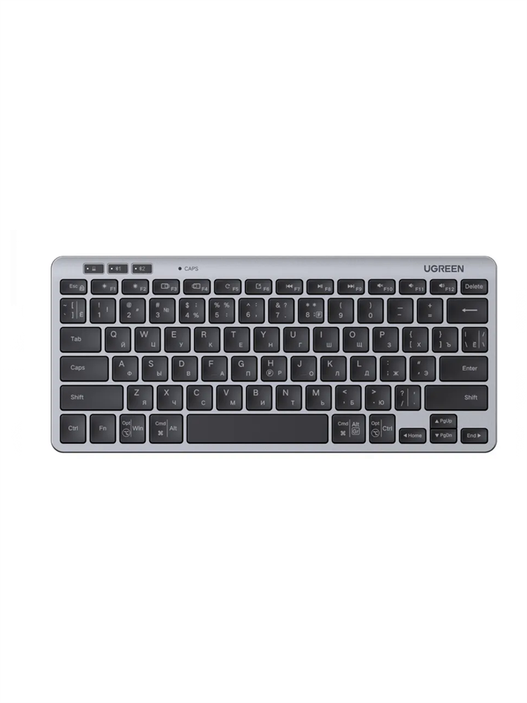 Беспроводная двухрежимная клавиатура UGREEN K551 (75049RU) Multi-Mode BT&2.4G легко поместится в любой портфель. Раскладка из 78 клавиш позволяет максимально эффективно использовать пространство на рабочем столе.