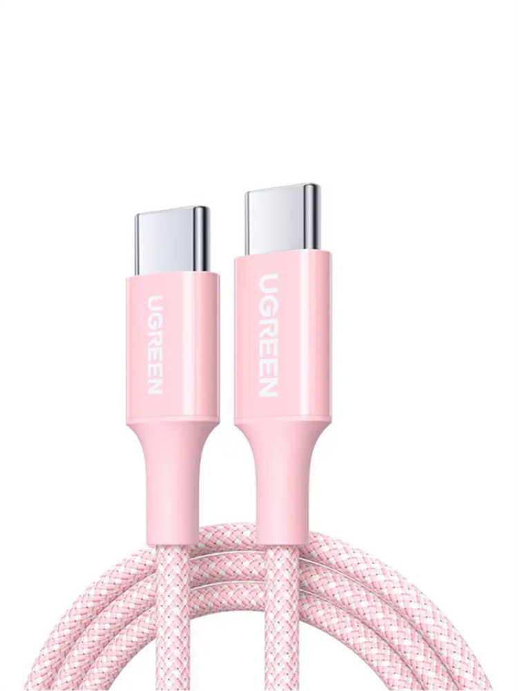 Кабель для зарядки UGREEN L501 (65246) 60W USB-C to USB-C PD Fast Charging Braided Cable 3A Max 2 метра, розовый