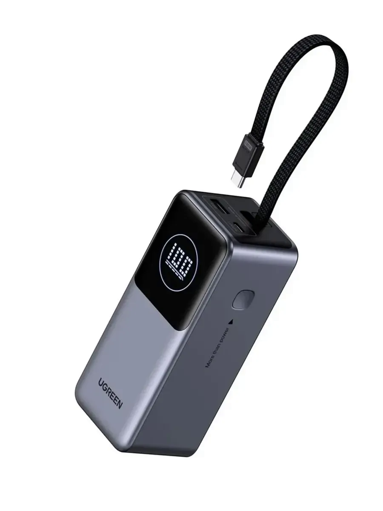 Внешний аккумулятор со встроенным кабелем UGREEN PB723 (55365B) 130W Power Bank с мощностью 20000mAh предлагает идеальное решение для зарядки ваших устройств в любое время и в любом месте. Оснащённый функцией быстрой зарядки, он поддерживает технологии быстрой зарядки и предоставляет мощность до 130W, что позволяет вам быстро восстановить заряд вашего смартфона, планшета или другого устройства.