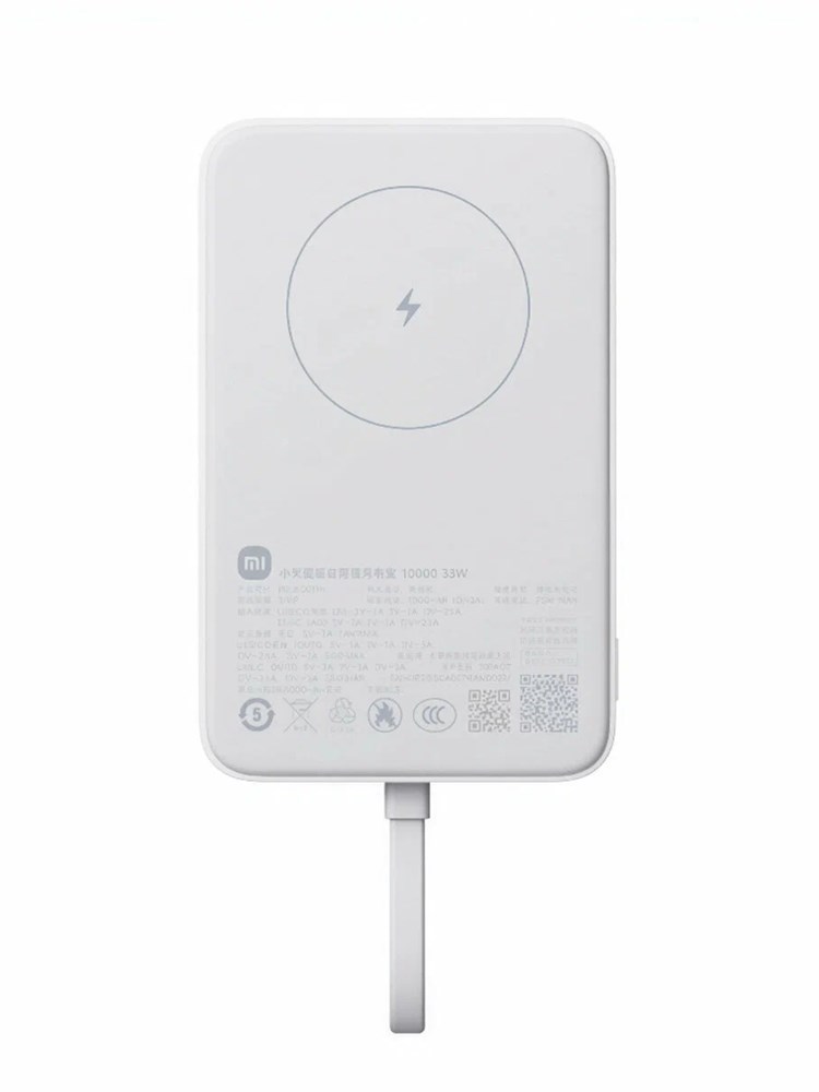 Xiaomi Magnetic Power Bank 10000mAh WPB1007MI BHR9760CN – магнитный внешний аккумулятор ёмкостью 10000 мАч. Блок питания оснащен двумя портами USB-C и способен заряжать до трех гаджетов одновременно. Он обладает функцией беспроводной зарядки максимальной мощностью 7,5 Вт. Порт USB-C обеспечивает быструю зарядку до 33 Вт. Во время использования зарядки через кабель беспроводная зарядка будет отключена по умолчанию. Тогда для активации беспроводной зарядки необходимо дважды нажать кнопку проверки питания. Максимальная мощность самозаряда 30 Вт. Присутствуют LED-индикаторы, которые определяют степень заряда аккумулятора.