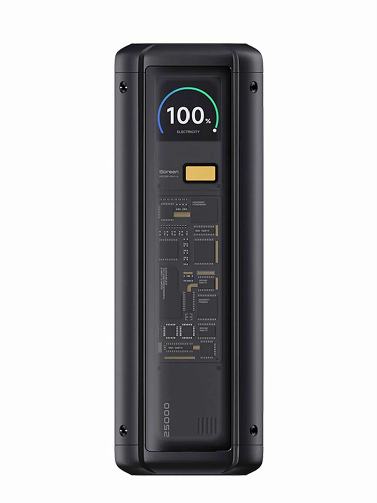 Xiaomi Powerbank 25000 212W удивляет не только своей мощностью, но и дизайном, который нетипичен для продукции компании. Прозрачный корпус позволяет заглянуть внутрь устройства и ощутить всю технологичность процесса зарядки. Этот подход к дизайну не просто декоративен, но и подчёркивает внимание к деталям и эстетическую привлекательность устройства, которое, несмотря на свою техническую направленность, легко станет частью вашего стиля.